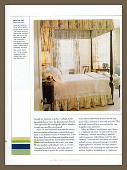 Colors and fabrics, mostly linens, were chosen to be light and informal. The entrance hall, with its sweeping cast-iron stair railing, is painted a cool lettuce green, richer than pastel but still summery. The furniture is an eclectic mix of 18th-and19th-century antiques featuring overstuffed English upholstery in florals and other patterns. Most of the rooms, including the bedrooms, have working fireplaces, including one in a bathroom, some with original ornate wood mantels, others with newly designed ones.